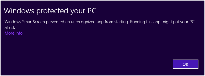 |f you select Run (or Save and then Run) you will see the following Windows SmartScreen:
